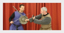 Die ab dem 15.Jahrundert aufgetretene zivile Form des Schwertes und später in Verbindung mit einer zusätzlichen Waffe (teilweise auch Mäntel und andere Utensilien) in der linken Hand.